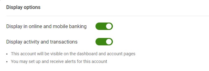 To Add Accounts to View – Locate your profile Name in the lower left hand corner < Settings < Northstar Bank < click on Account < click on toggle button to turn on