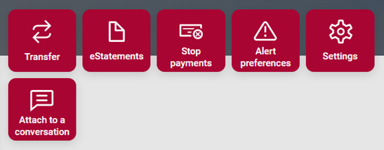 Use the account shortcut options to transfer, view eStatements, stop payments, alert preferences, settings and conversations. Below are shortcuts that go to user guides for each account tool.